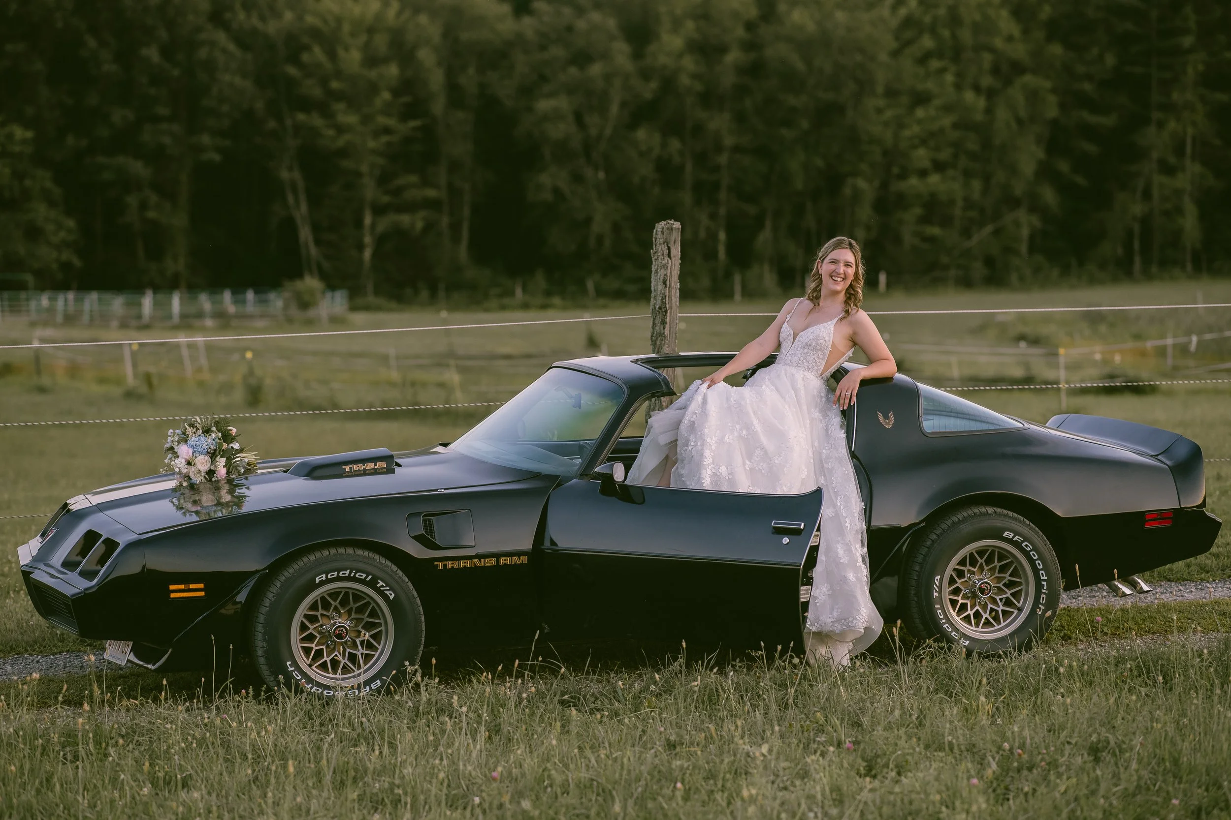 George worked every night for six months to resurrect his dad’s old Trans Am, and on the evening he married Annika it carried them down a gravel farm road like devotion made visible, dust rising behind them like in a classic action movie with a whimsical love story. At Valley View Farm, traditions from Denmark, Lebanon, and the United States folded into one another as horses grazed in golden hour and a dance floor full of cowboy hats turned into pure unfiltered joy. It was a wedding built the way George rebuilt that car, slowly, intentionally, with both hands, and by the end of the night everyone knew the work had been worth it.